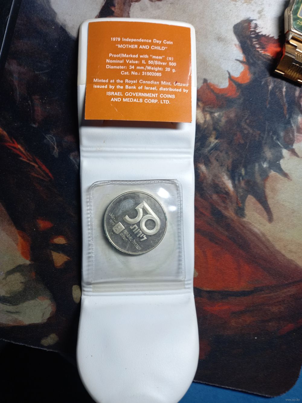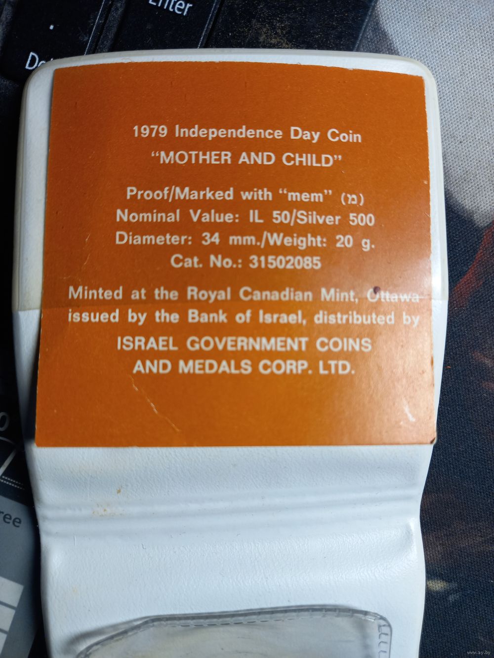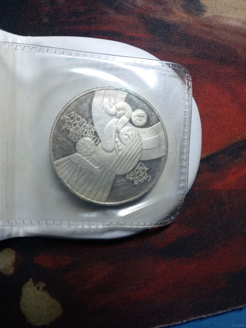 Израиль 50 лир 1979 г., 30 лет независимости Мать и дитя пруф в чехле, серебро