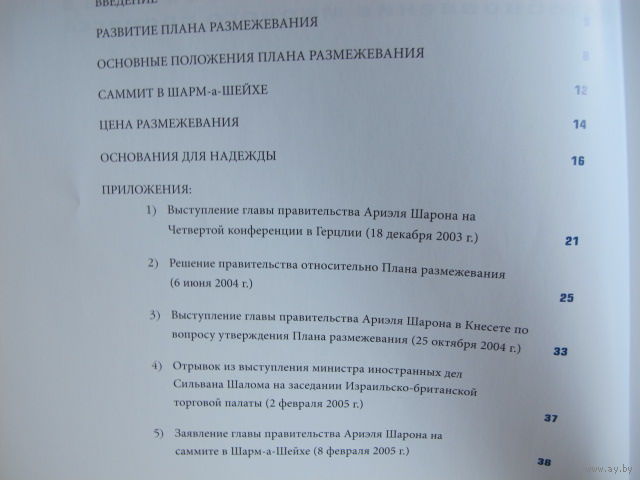 Израильский план размежевания. Возобновление мирного процесса