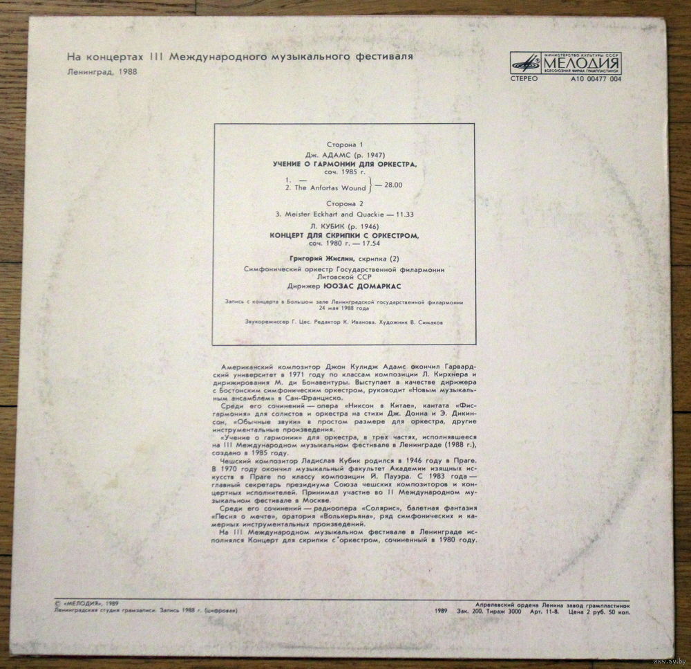 J. Adams / L. Kubik - Harmonielehre For Orchestra / Concerto For Violin And Orchestra.