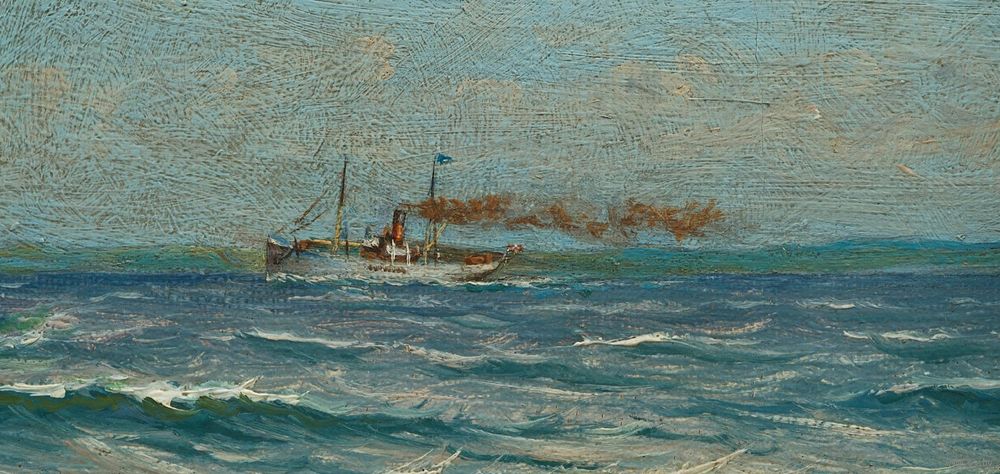 Художник J. P. Nielsen, имя которого указано в правом нижнем углу, предположительно имел датское происхождение. Он принадлежал к числу мастеров, работавших в русле европейской маринистической традиции. Время написания — около 1920-х годов — подтверждено стилистикой, материалами и состоянием живописного слоя.