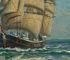 Картина «Датский парусник», написанная маслом на холсте около 1920-х годов, изображает бриг с поднятым флагом Дании, идущий по волнам под полными парусами. Судно выписано с вниманием к деталям: чётко передана структура такелажа, парусное вооружение и наклон корпуса при движении по ветру. На горизонте слева виднеется берег с архитектурными постройками, справа — другие корабли, что придаёт сцене глубину и ощущение морской навигации. Композиция построена диагонально, с акцентом на динамику парусника. Волны переданы реалистично, с оттенками зелёного и синего, подчёркнутыми белыми гребнями. Небо написано в светлой гамме, с детально прорисованными облаками, создающими контраст с парусами. Общая манера письма указывает на академическую школу и романтическую традицию морской живописи.