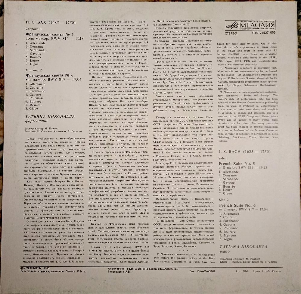 J. S. Bach - Tatiana Nikolaeva – French Suites Nos. 5, 6