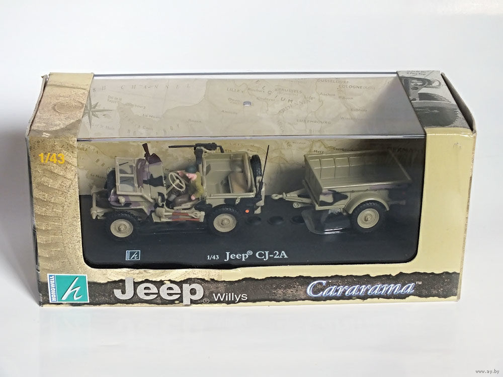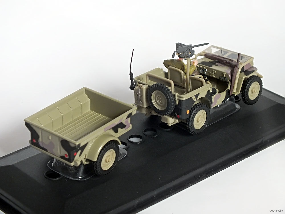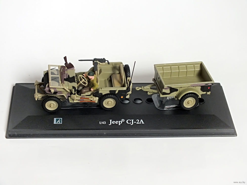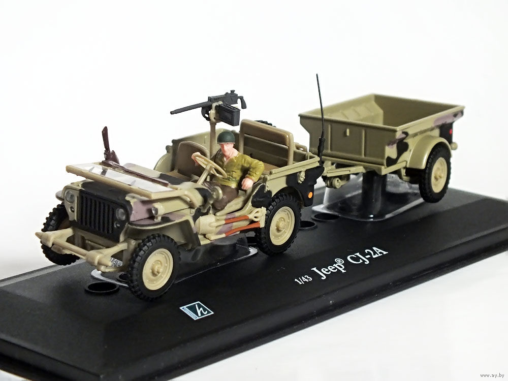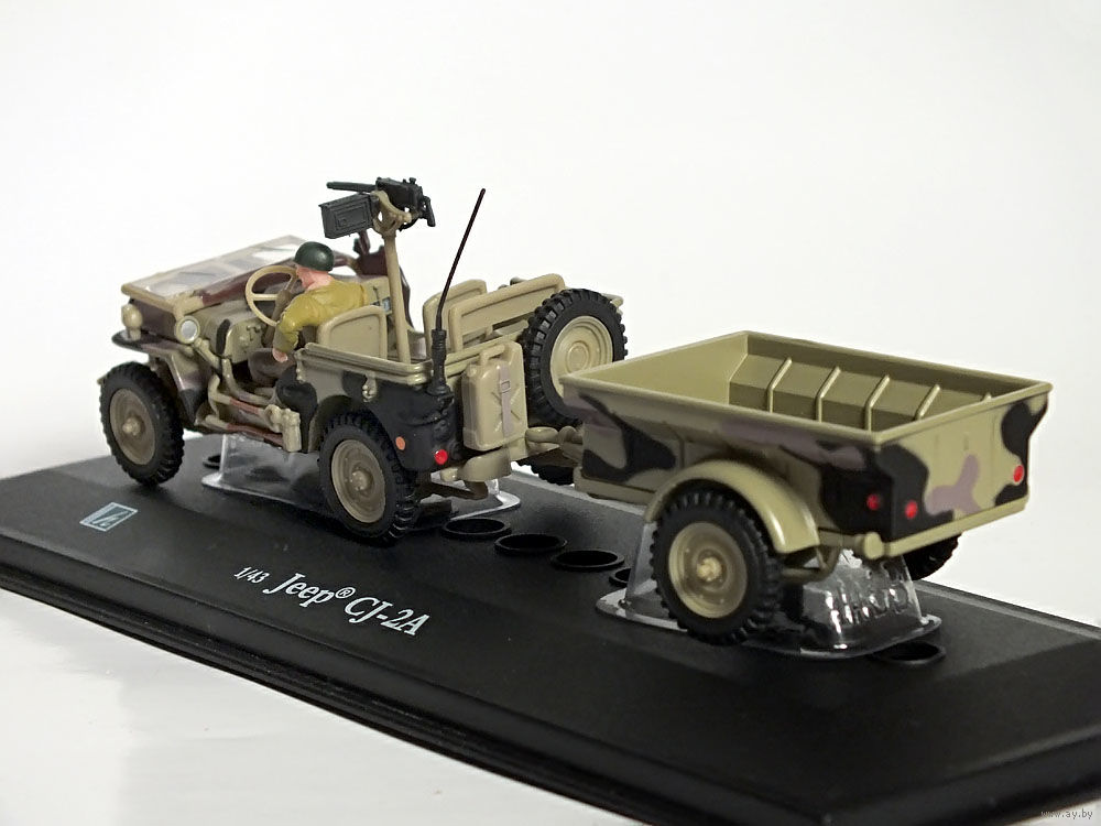 Масштабная модель автомобиля Jeep CJ-2A камуфляж (с прицепом). Масштаб 1:43. Производство "Hongwell".