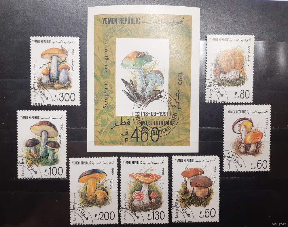 Йемен. 1990 год. Флора. Грибы. Блок и 7 марок (990)