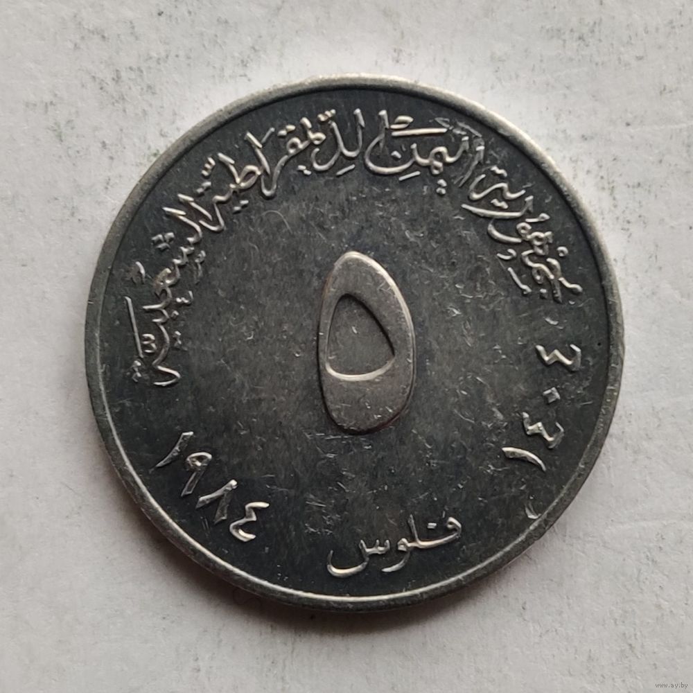 Номер KM # 4 Страна Южный Йемен Период Народная Демократическая Республика (1965 - 1990) Валюта Динар Южного Йемена Вид чекана Регулярный чекан Номинал 5 филсов Год 1973 - 1984 Гурт Гладкий Форма Круг Отношение авс/рев Медальное (0°) Материал Алюминий Вес (g) 1,35 Диаметр (mm) 23,1 Толщина (mm) 1,4