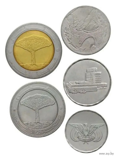 Йемен набор монет 1, 5, 10, 25/25 риалов, UNC. Пальма. Сторгуй за свою цену, предложи обмен!