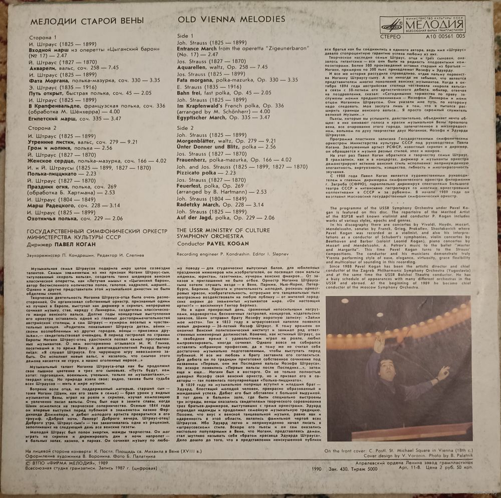 Joh. Strauss / Jos. Strauss / E. Strauss / Joh. Strauss - The USSR Ministry Of Culture Symphony Orchestra, Pavel Kogan – Old Vienna Melodies