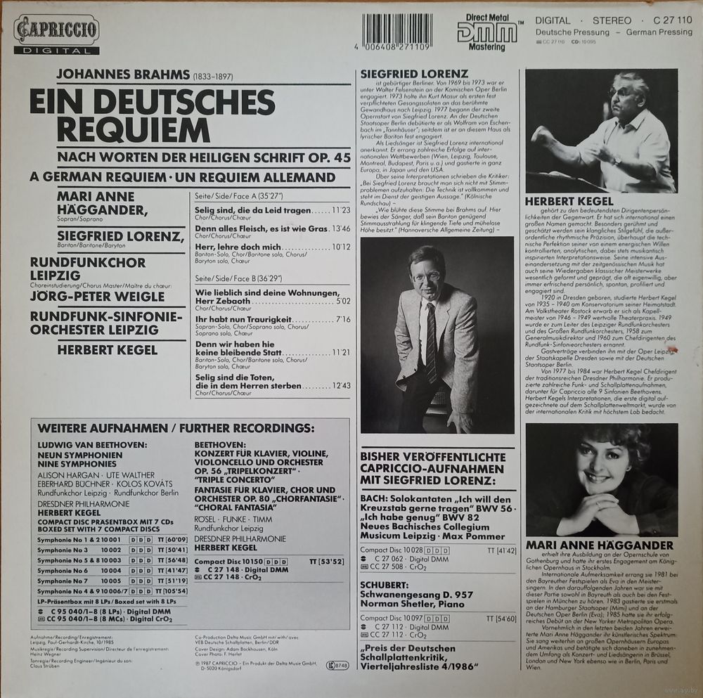| Исполнитель | Mari Anne Häggander, Siegfried Lorenz, Rundfunkchor & Rundfunk-Sinfonie-Orchester Leipzig, Herbert Kegel |