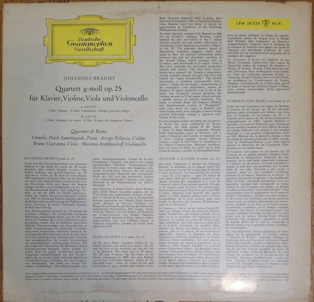 Johannes Brahms, Quartetto Di Roma – Klavier-Quartett g-Moll Op. 25