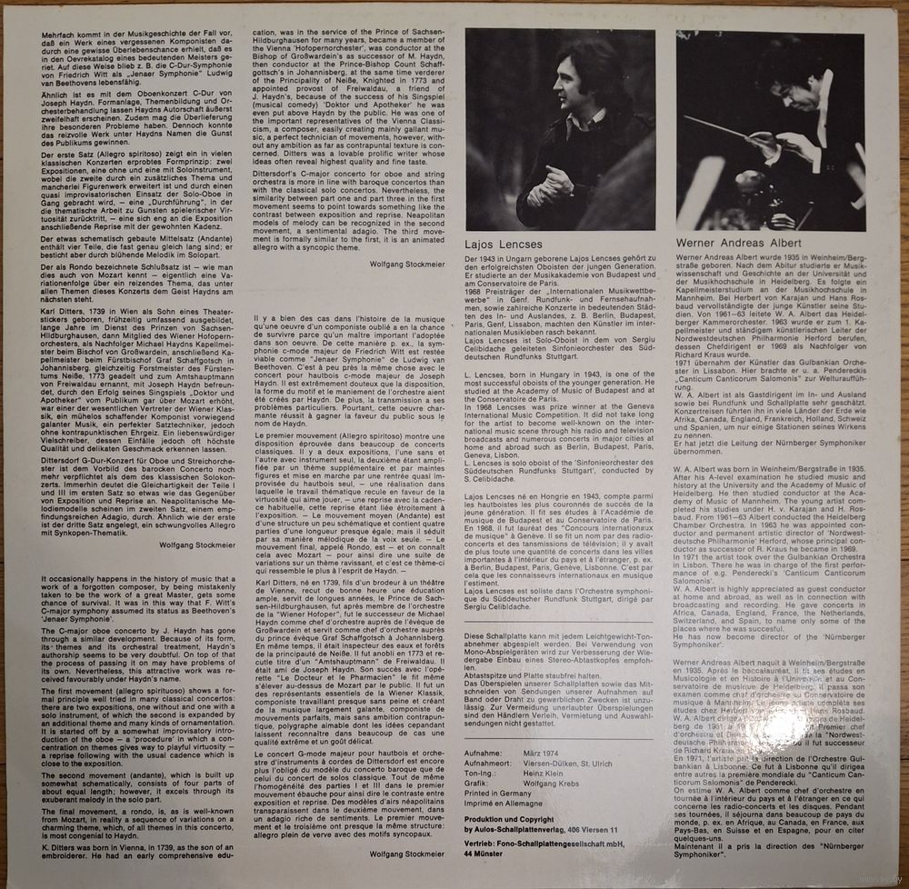 Josef Haydn / Ditters von Dittersdorf - Lajos Lencses, Collegium Classicum Ltg. Werner Andreas Albert – Klassische Oboenkonzerte