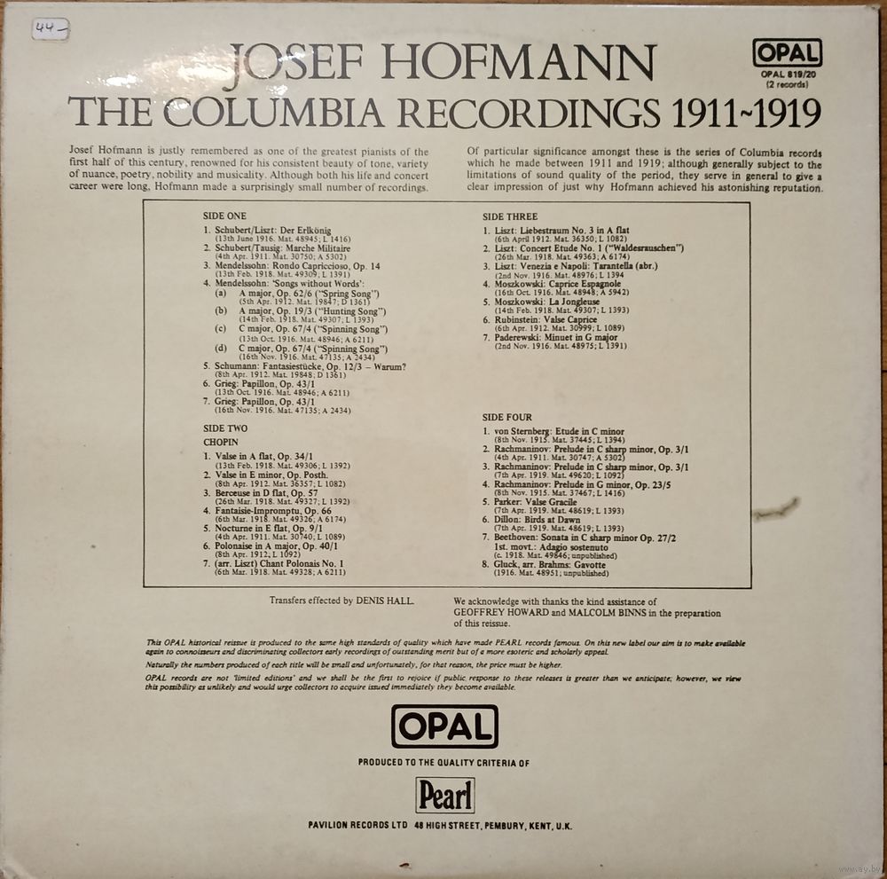 Josef Hofmann – The Columbia Recordings 1911-1919 (2 LP)