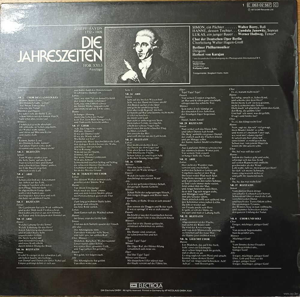 Joseph Haydn – Die Jahreszeiten - Auszuge. Herbert Von Karajan.