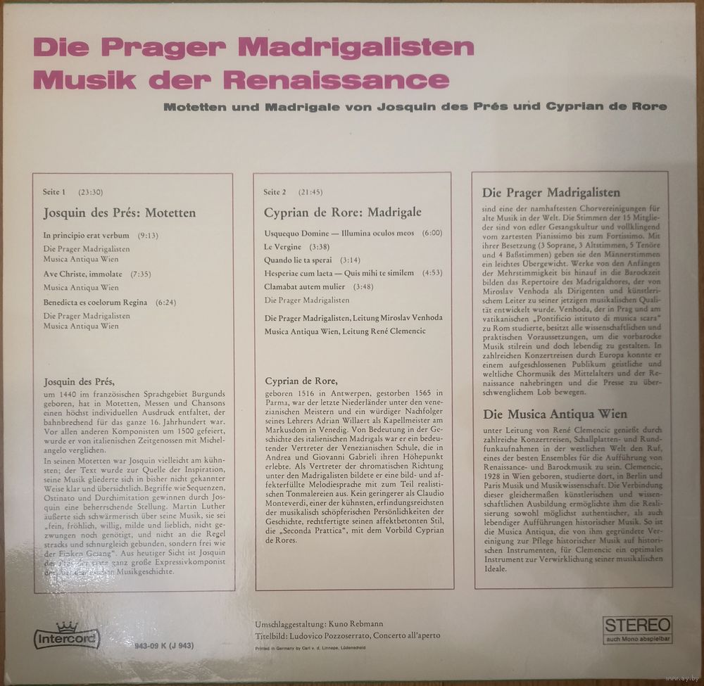 Josquin Des Pres / Cyprian De Rore - Die Prager Madrigalisten / Musica Antiqua Wien – Motetten Und Madrigale Der Renaissance