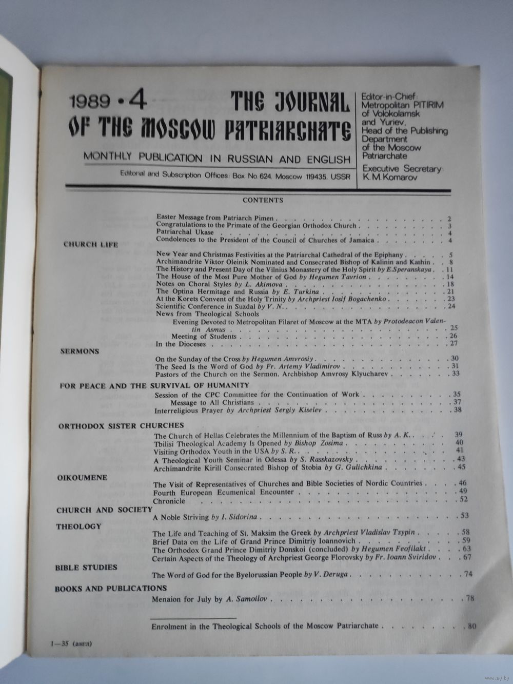 Journal of the Moscow Patriarchate 4 1989. (на английском)