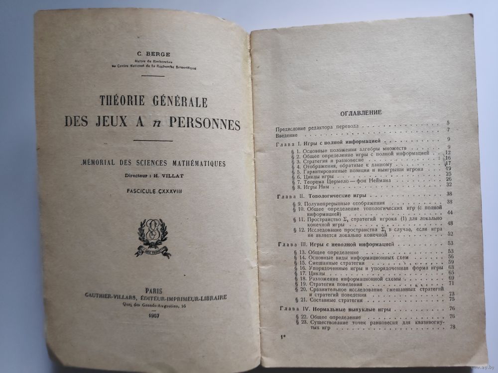 В книге подробно излагается общая теория игр нескольких лиц. Без доказательства приводится лишь малая часть теорем, которые по своему содержанию отступают от основной линии изложения. Главы I, II и III посвящены играм нескольких лиц в развернутой форме. Особенностью излагаемой теории является введение отношений предпочтения для игроков на всем множестве проходимых позиций игры, что часто позволяет получить для бесконечных игр результаты, аналогичные результатам для игр ограниченной длительности с конечным числом альтернатив. В главе IV изучаются топологические игры в нормальной форме. Основное внимание уделено обобщениям важнейшей теоремы теории игр - теоремы фон Неймана о минимаксе. В главе V излагается теория коалиций в играх нескольких лиц. Автор впервые в общей форме дает строгое и достаточно полное изложение современного состояния этих разделов теории. Хотя для понимания книги предварительных знаний по теории игр не требуется и без объяснений употребляются лишь элементарные сведения из алгебры, теории множеств и топологии, книга рассчитана на читателя, обладающего высокой математической культурой.