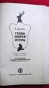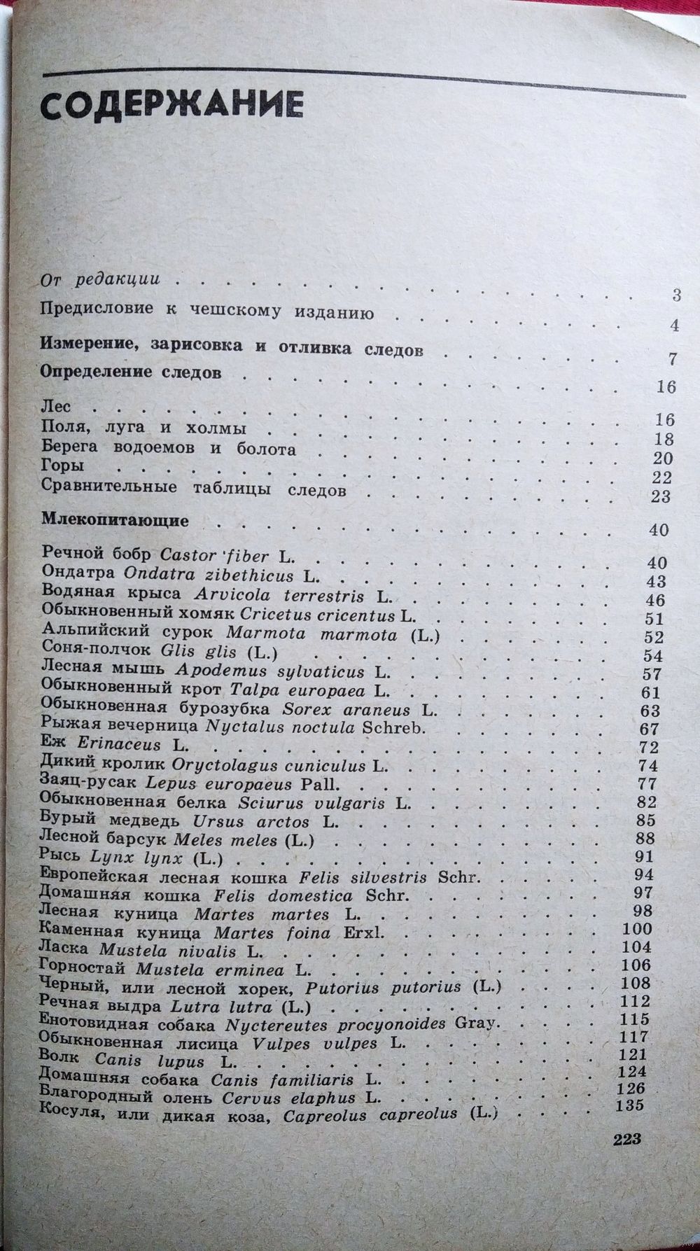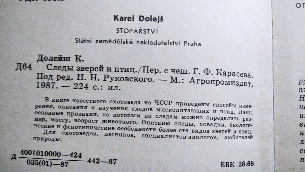В книге известного охотоведа из ЧССР приведены способы измерения, описания и изучения следов млекопитающих и птиц. Даны основные признаки, по которым по следам можно определить размер, массу, возраст животного. Описаны следы, повадки, биологические и фенотипические особенности более ста видов зверей и птиц. ** Для охотоведов, лесников, специалистов — экологов, любителей природы.