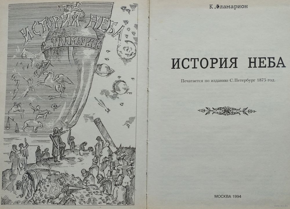 Большой формат. Тираж 10000 экз. 468 стр. Книга представляет собой общедоступную историю астрологии и астрономии. Первобытная древность этих наук, происхождение небесной сферы и созвездий, взгляды древних на строение мира, небо язычников и небо христиан, формы, придаваемые земному шару до Христофора Колумба, религиозное и научное мнение о строении неба до Коперника, мнимые путешествия на небо, и даже в таинственные края `того света`, понятие о `музыке небесных сфер` определение времени и вечности - большое количество документов эпохи по данным темам....