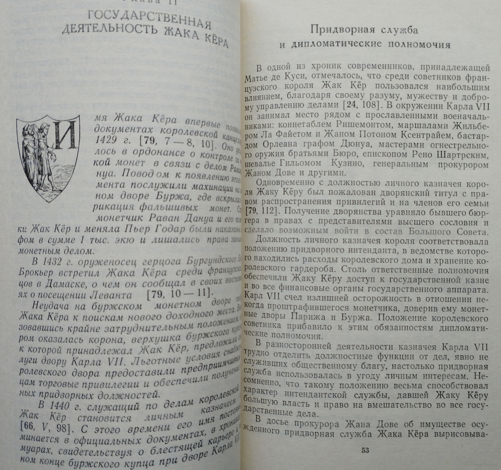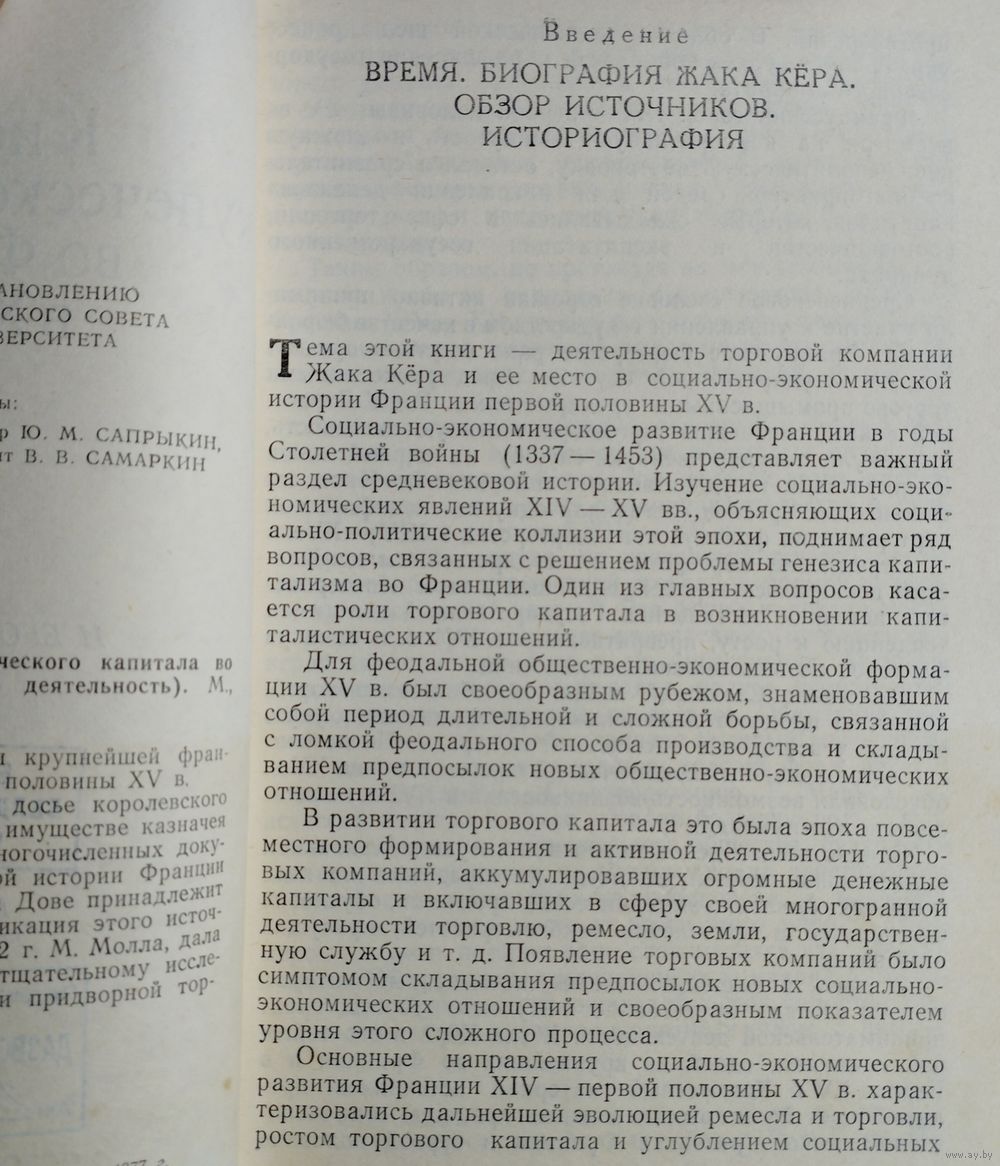 Тираж 1030 экз. 184 стр. Тема этой книги — деятельность торговой компании Жака Кёра и ее место в социально-экономической истории Франции первой половины XV в. Социально-экономическое развитие Франции в годы Столетней войны (1337–1453) представляет важный раздел средневековой истории. Изучение социально-экономических явлений XIV–XV вв., объясняющих социально-политические коллизии этой эпохи, поднимает ряд вопросов, связанных с решением проблемы генезиса капитализма во Франции. Один из главных вопросов касается роли торгового капитала в возникновении капиталистических отношений. Для феодальной общественно-экономической формации XV в. был своеобразным рубежом, знаменовавшим собой период длительной и сложной борьбы, связанной с ломкой феодального способа производства и складыванием предпосылок новых общественно-экономических отношений. В развитии торгового капитала это была эпоха повсеместного формирования и активной деятельности торговых компаний, аккумулировавших огромные денежные капиталы и включавших в сферу своей многогранной деятельности торговлю, ремесло, земли, государственную службу и т. д. Появление торговых компаний было симптомом складывания предпосылок новых социально-экономических отношений и своеобразным показателем уровня этого сложного процесса. Основные направления социально-экономического развития Франции XIV — первой половины XV в. характеризовались дальнейшей эволюцией ремесла и торговли, ростом торгового капитала и углублением социальных противоречий. В области политической шел процесс укрепления королевской власти и расширения государственного аппарата.