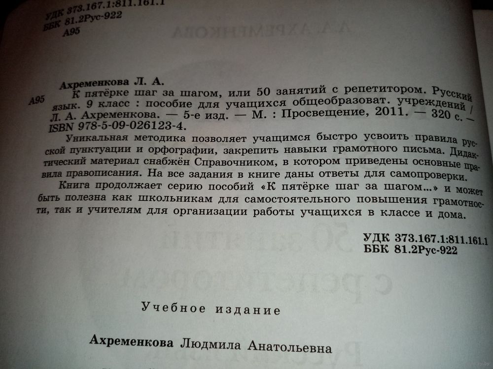 Популярное пособие Л. А. Ахременковой «К пятерке шаг за шагом. Русский язык. 9 класс» для подготовки к экзаменам. Просвещение 2011 г. Для 9-классников для повторения программы и подготовки к выпускным работам.