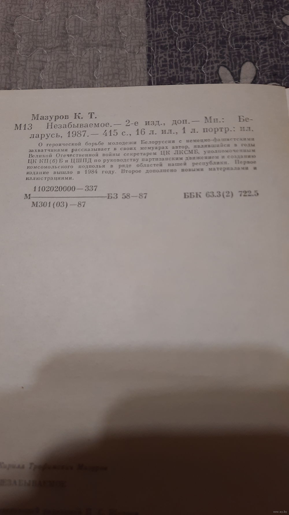 К.Т.Мазуров Незабываемое, Минск 1987г.