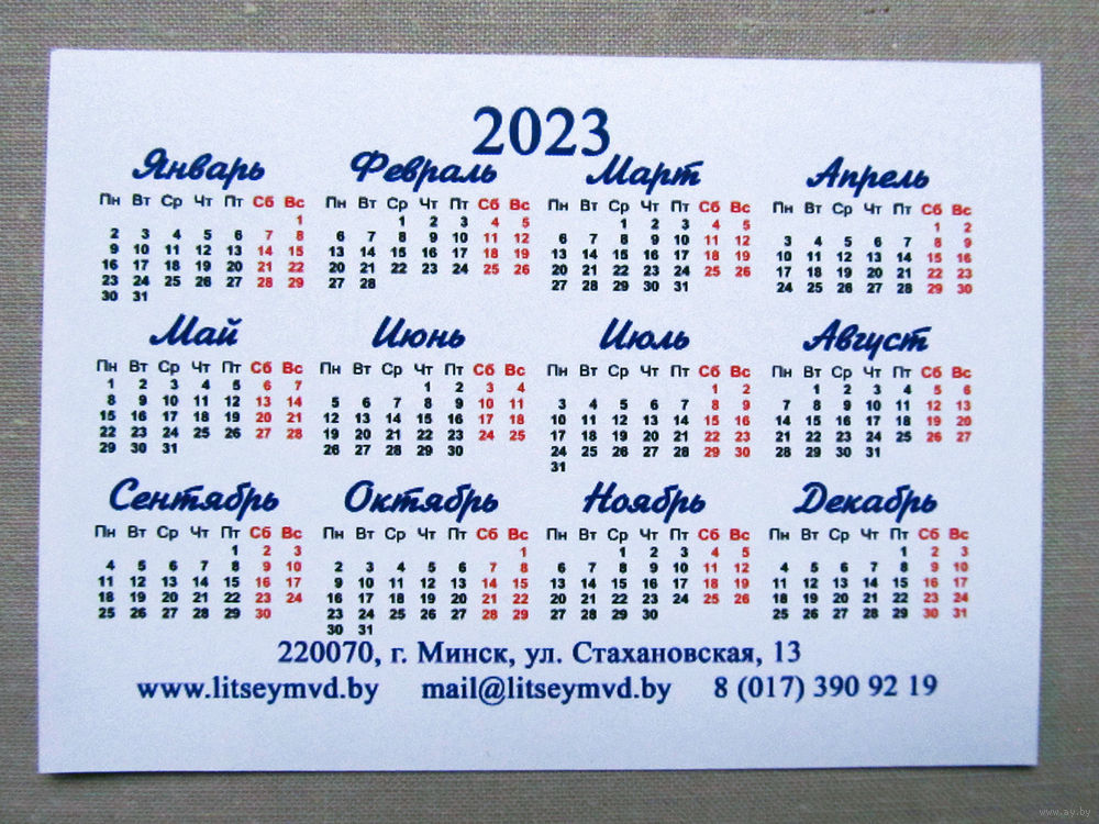 К06 Календарик Специализированный лицей МВД РБ 2023 Беларусь