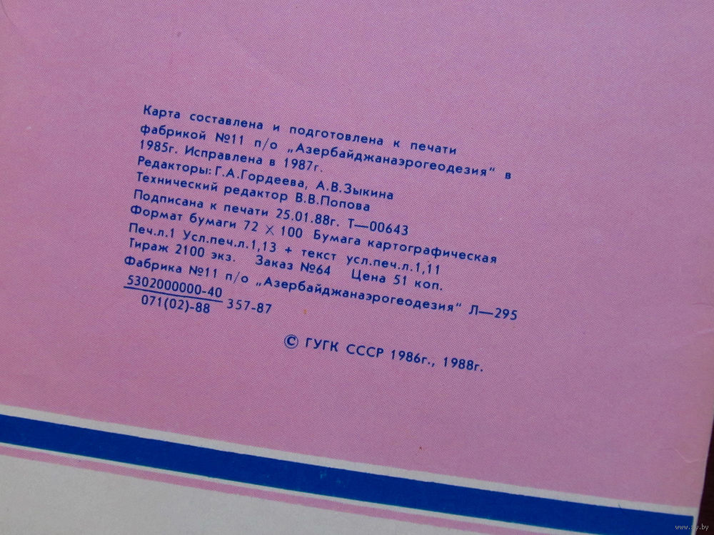 К3-783 Карта Азербайджанская ССР Масштаб 1-600 000 В 1 см 6 км ГУГК СМ СССР Москва 1988