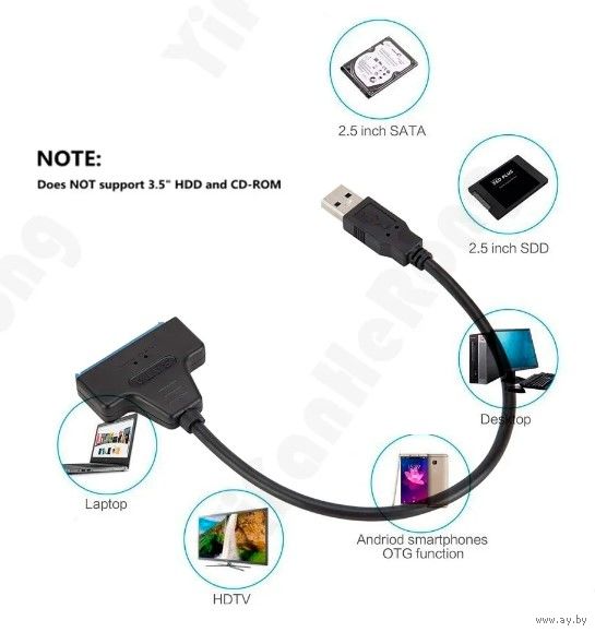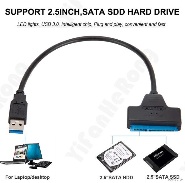Кабель-переходник (адаптер) для подключения жёсткого диска HDD/SSD 2.5" (интерфейс SATA) напрямую к компьютеру/ноуту через USB 3.0/2.0.