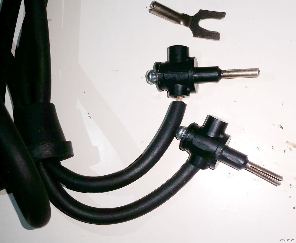 Штеккеры стандартные. Зажимы подгибать под аккумуляторные клеммы.