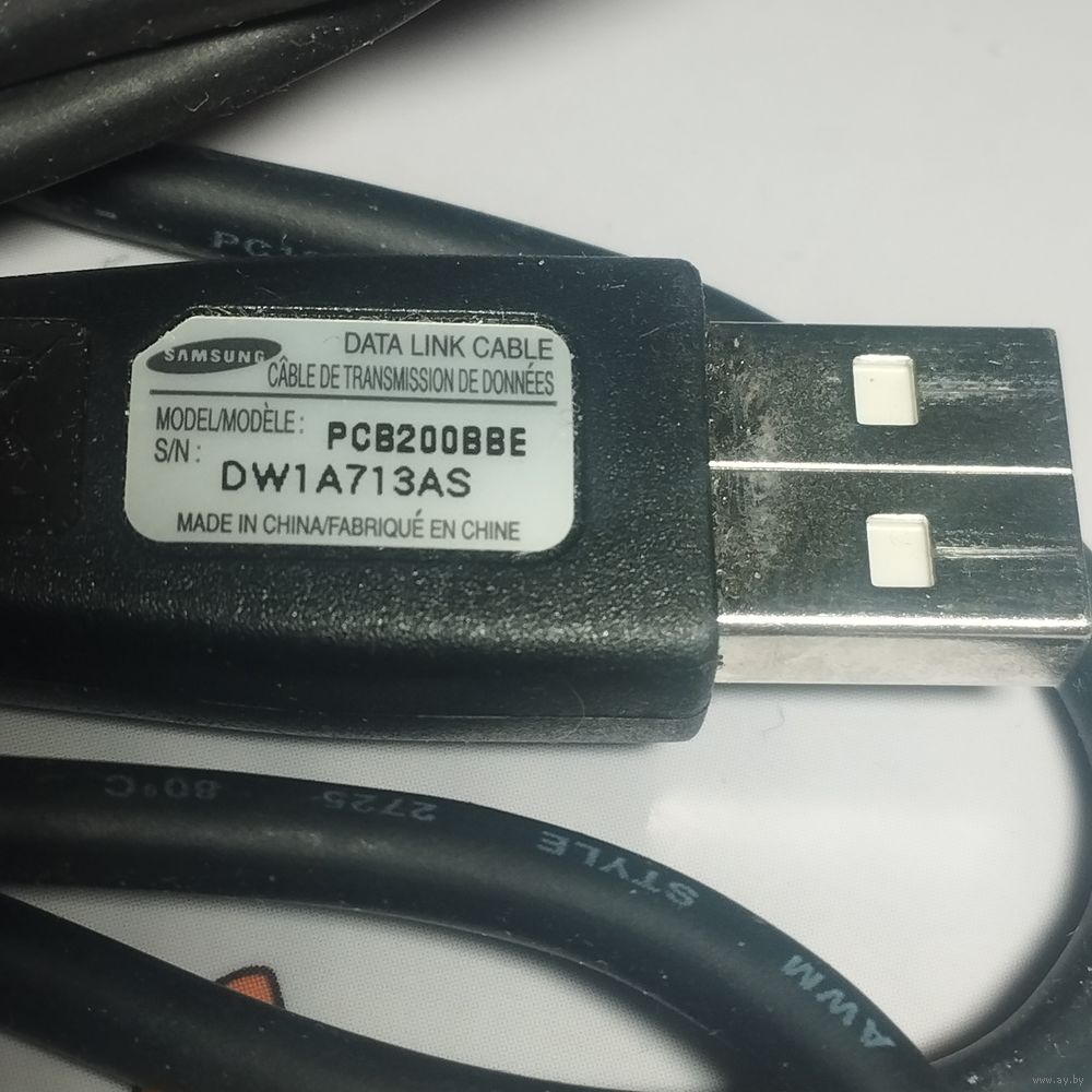 кабель передачи данных Samsung (модель PCB200BBE). Назначение: Предназначен для подключения мобильных телефонов Samsung к компьютеру через порт USB. Функциональность: Используется для передачи данных, фотографий, мелодий, а также для подключения к интернету (GPRS). Тип разъема: USB Type-A с одной стороны (для подключения к ПК), и неизвестный тип для подключения к телефону.