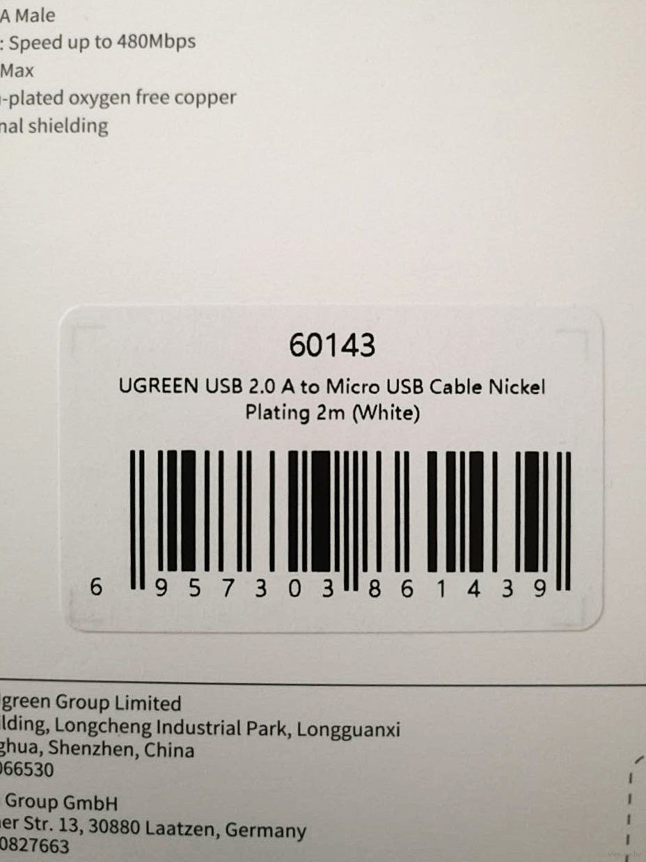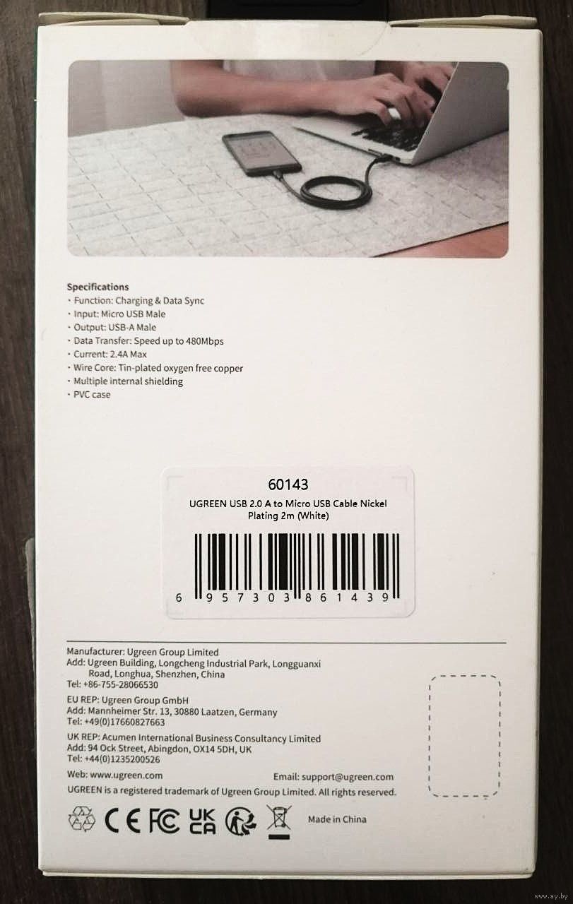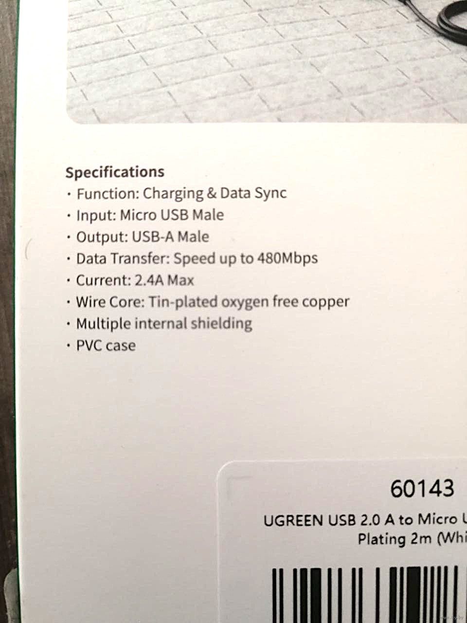 Кабель UGREEN 2m Белый USB2.0A MicroUSB Nickel 60143
