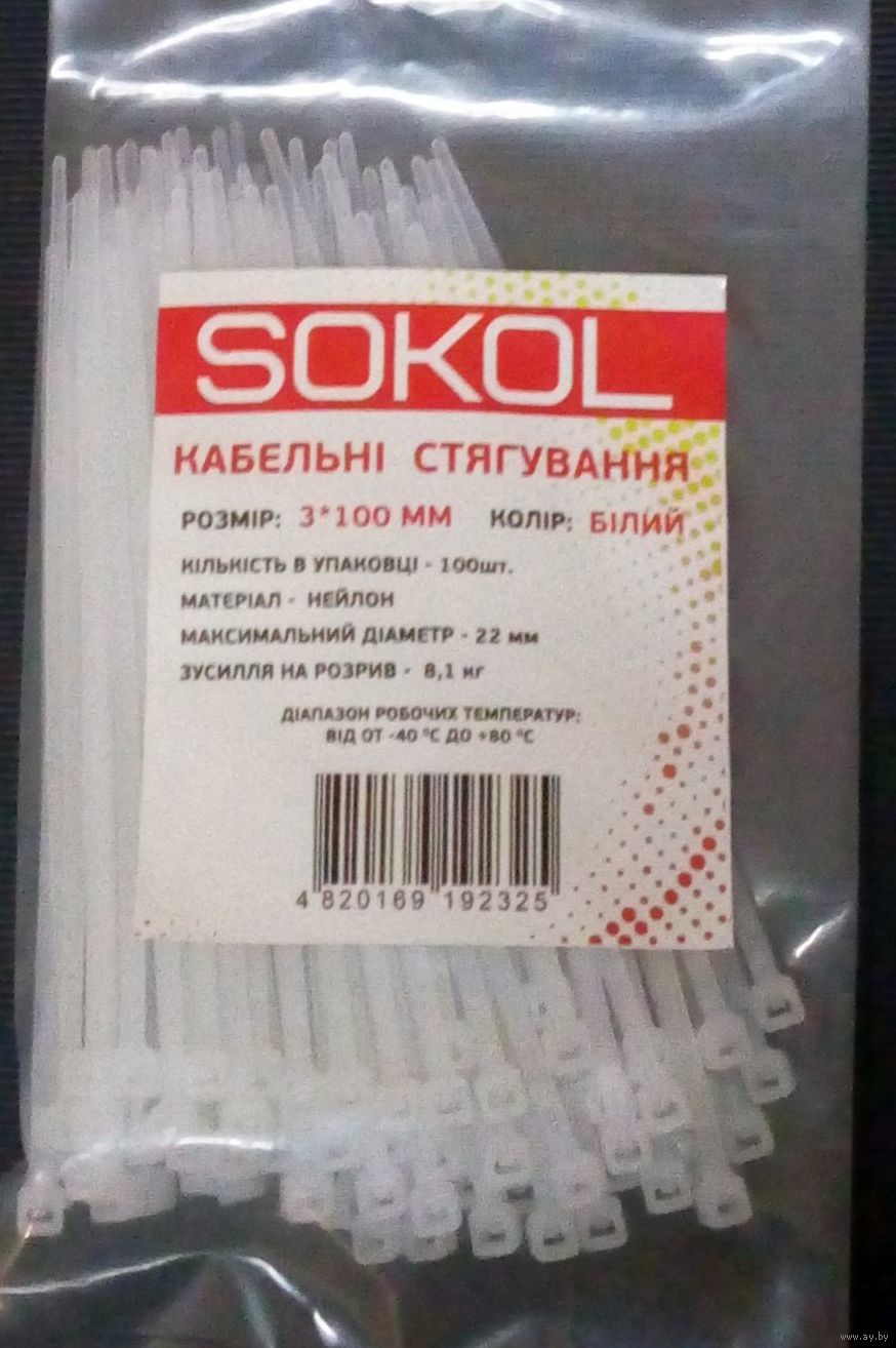 Кабельный хомут нейлон белый 3х100мм, (100шт) с 1 рубля