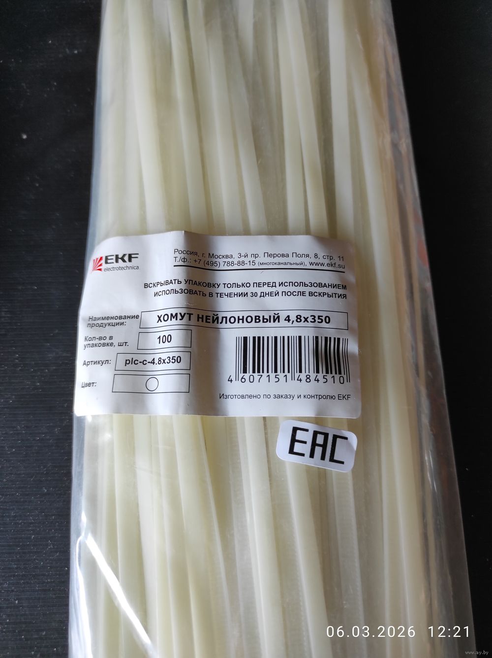 Кабельный хомут нейлон белый 4,8х350мм, (100шт) с 1 рубля