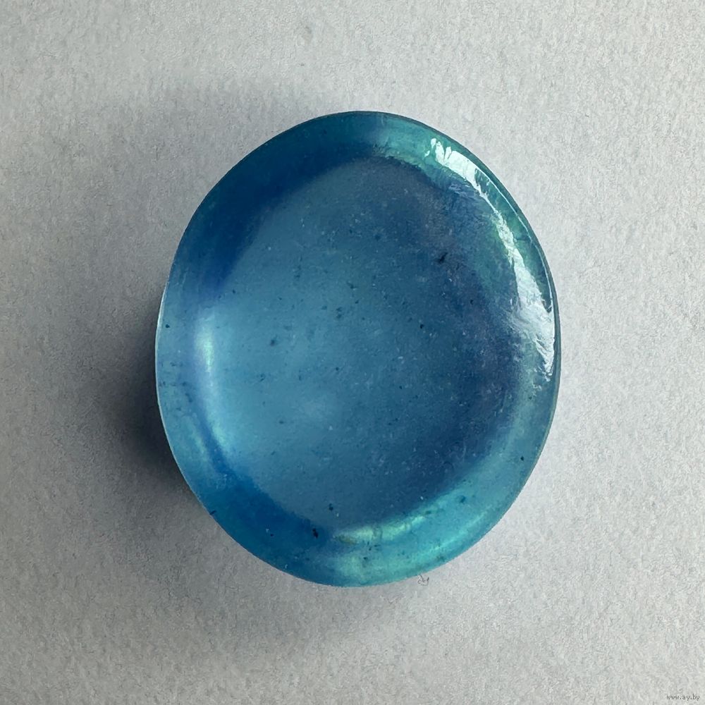 Аквамарин природный, огранка кабошон подчеркивает хороший бразильский цвет. Камень без трещин, прозрачность присутствует, включения гармоничные (черные точки).