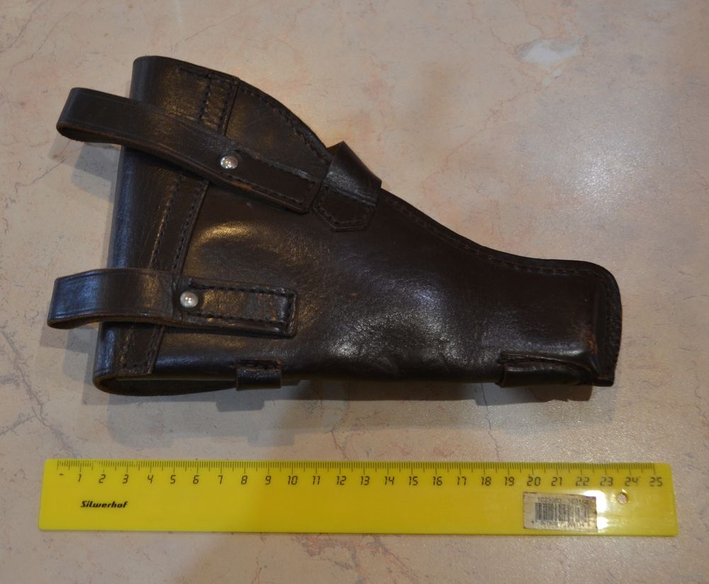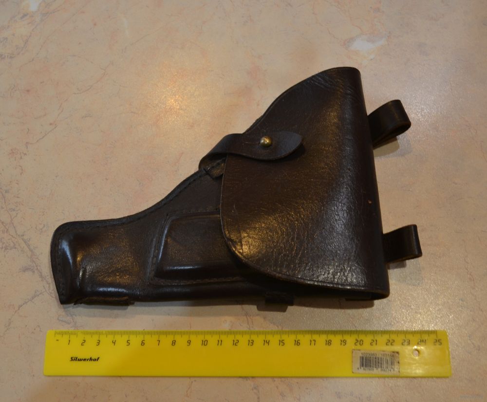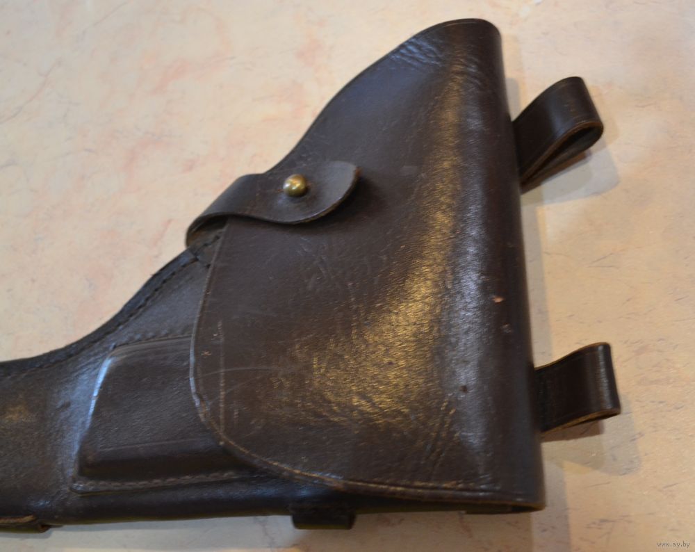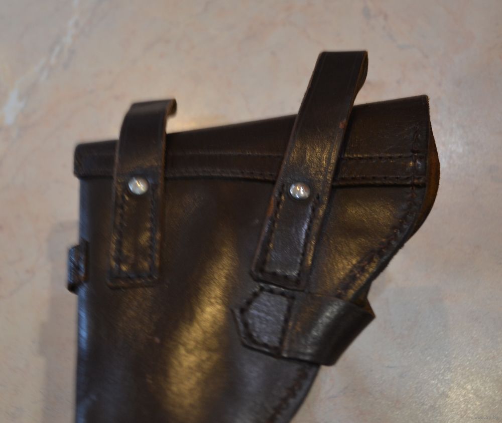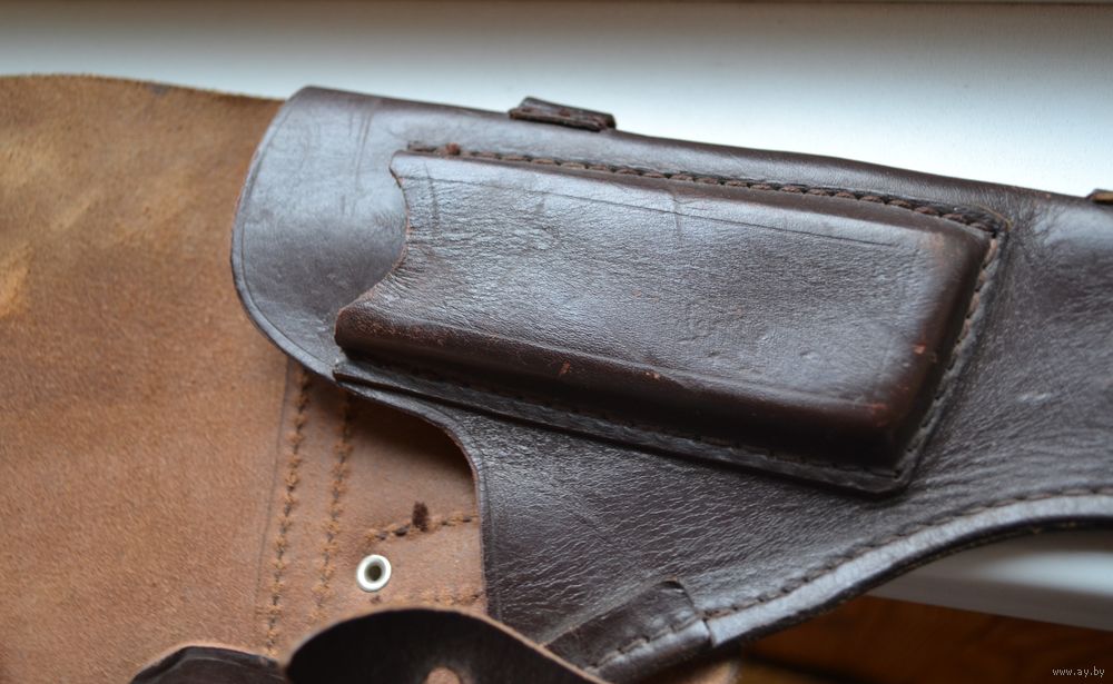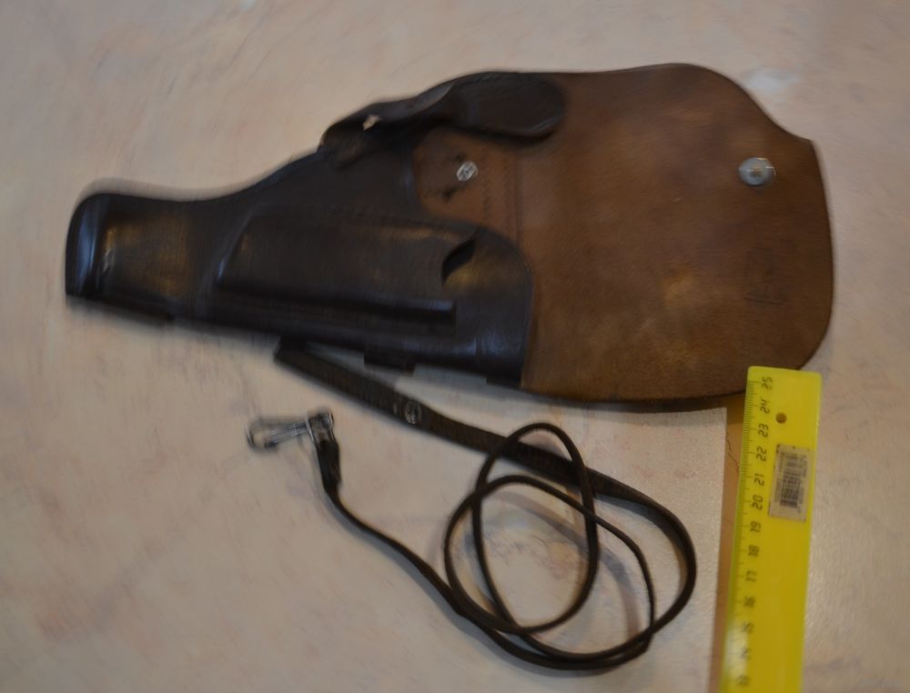 Кабура и ремешок кожа. На ремешке на коже просматриваются местами полоски (СМОТРИЕ ПОСЛЕДНЕЕ ФОТО). Цвет коричневый.