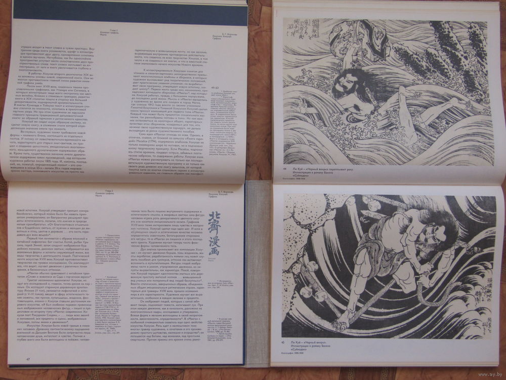 1-й том - рассказ об истории графики Японии и биография художника. 2-й том - иллюстрации графики Кацусика Хокусая. "Кацусика Хокусай (1760-1849)- великий японский художник укие-э, иллюстратор, гравер периода Эдо. Является одним из самых известных на Западе японских граверов, мастер завершающего периода японской ксилографии.