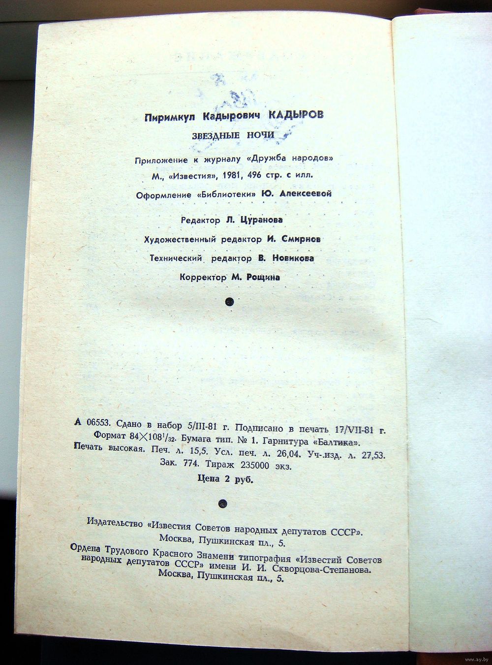 Книга "Звёздные ночи" ("Бабур"). Автор - Кадыров Пиримкул.