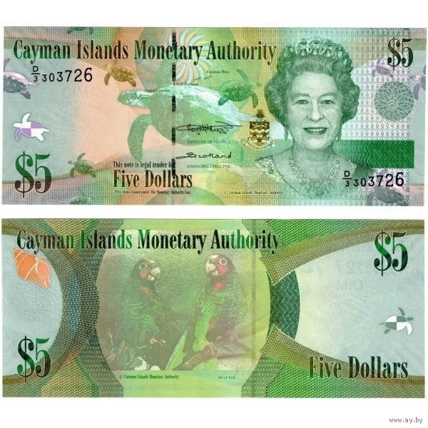 Каймановы острова 5 долларов образца 2018 года UNC p39 серия D/3