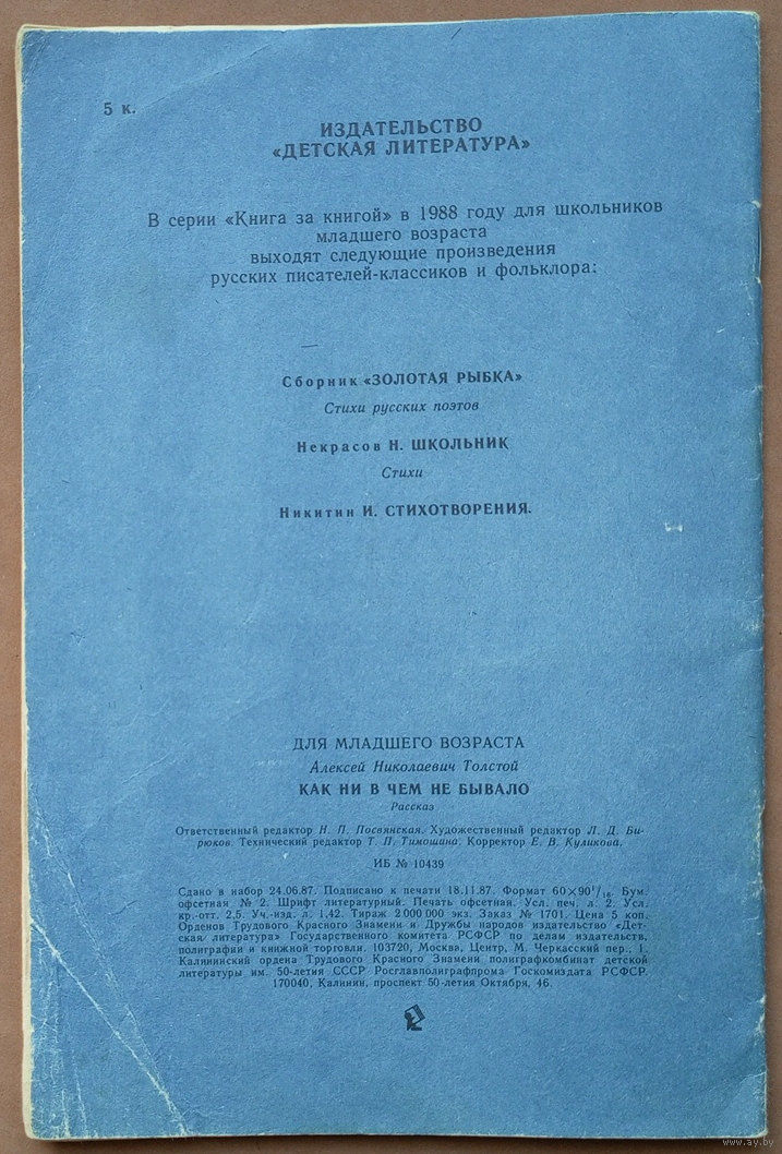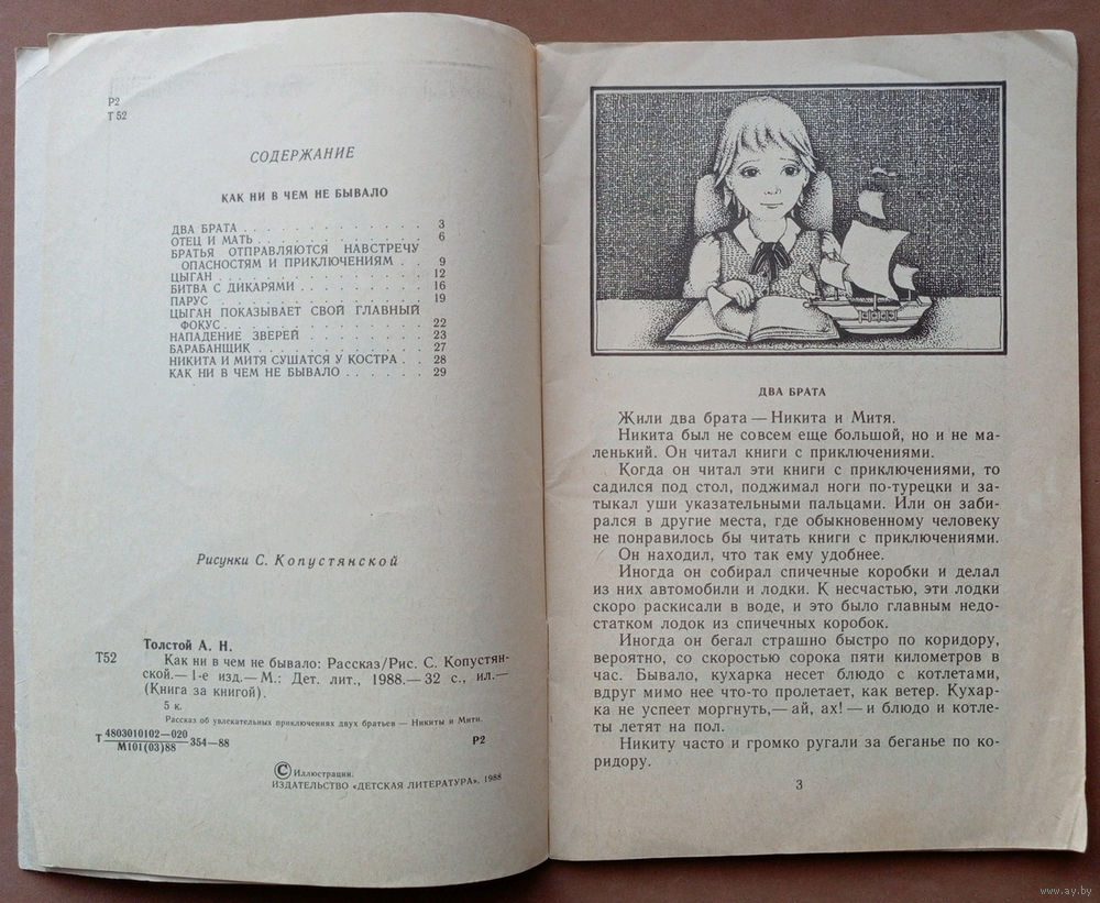 Как ни в чём не бывало. Алексей Толстой. Серия "Книга за книгой". Изд. "Детская литература". 1988г. Художник С. Копустянская.