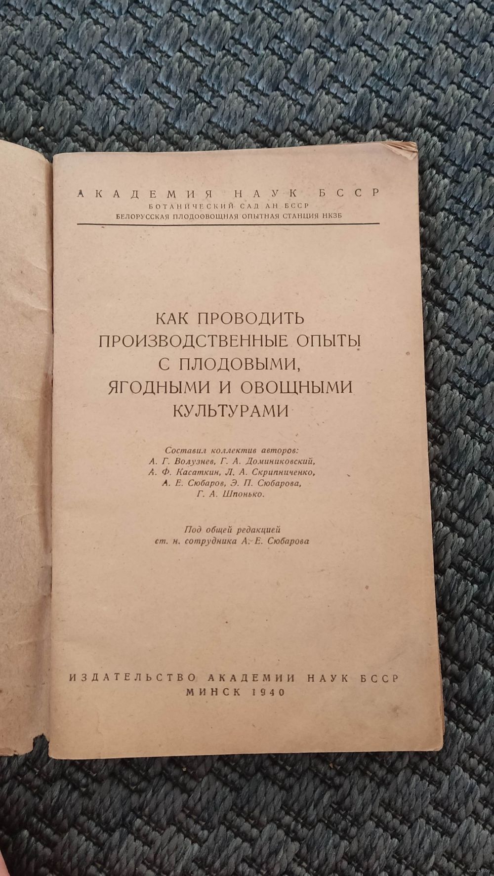 Как проводить производственные опыты с плодовыми ягодными и овощными культурами. Минск 1940 год.