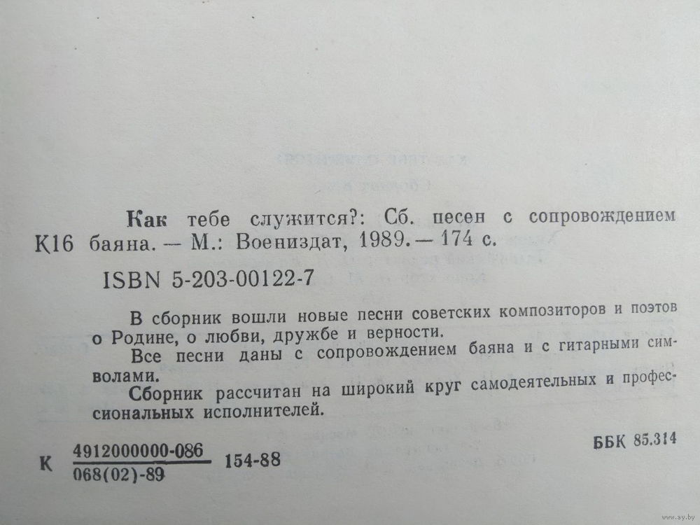 .29. Как тебе служится? Сборник песен с сопровождением баяна. 1989 год.