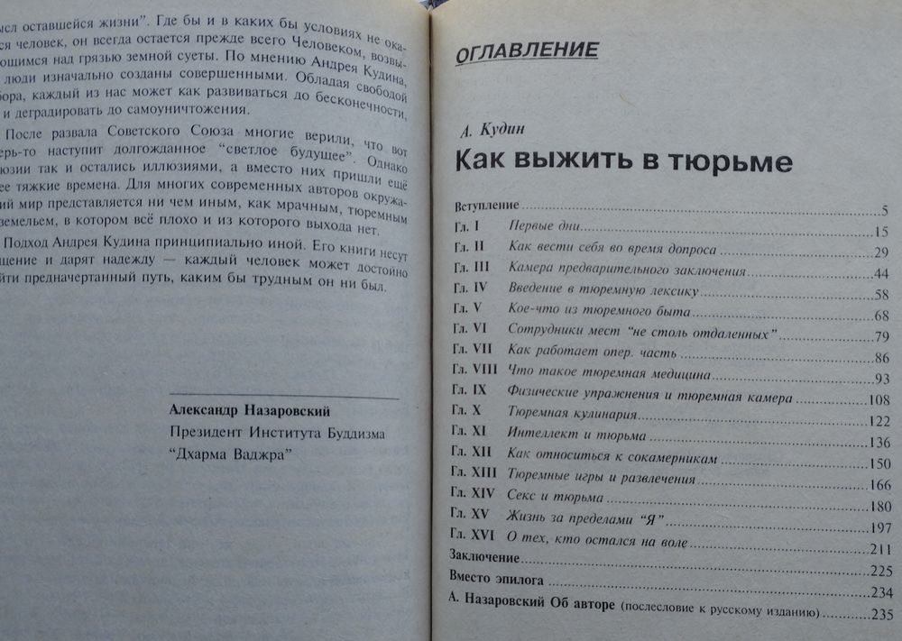 Большой формат. Тираж 10000 экз. 240 стр. Практикум по выживанию в «местах не столь отдаленных» составлен кандидатом философских наук, знатоком восточных единоборств, сумевшим в заключении не только выжить, но и сохранить человеческое достоинство. Кудин Андрей Вячеславович, кандидат философских наук, мастер у-шу, журналист и писатель - относится к разряду тех, книги которых стоит прочитать.