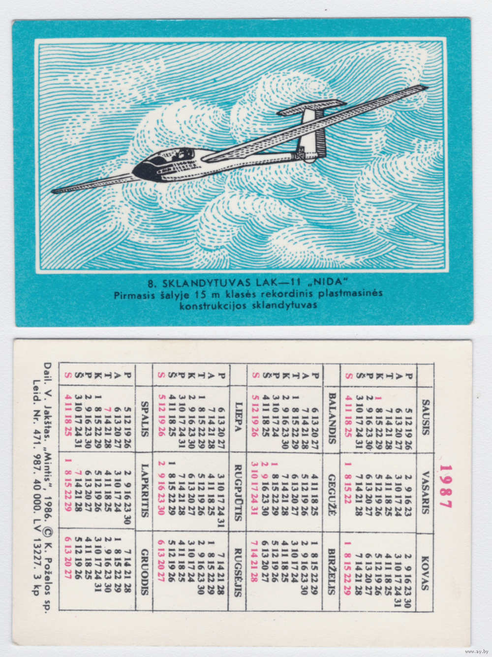 Календарь Авиация Аэроплан ЛАК-11 "НИДА" 1987 год
