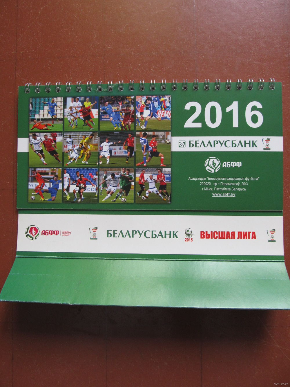 | Календарь-"домик" с перекидными листами от ассоциации "Белорусской федерации футбола"(на мове).Все нюансы видны на фото.Если для принятия окончательного решения их недостаточно,сделаю нужный ракурс | |
