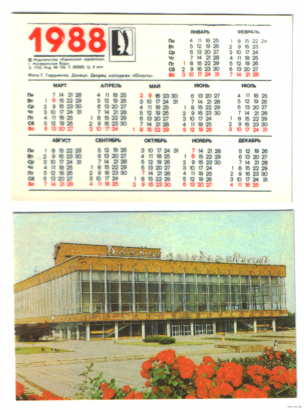Календарь Донецк Дворец молодежи 1988