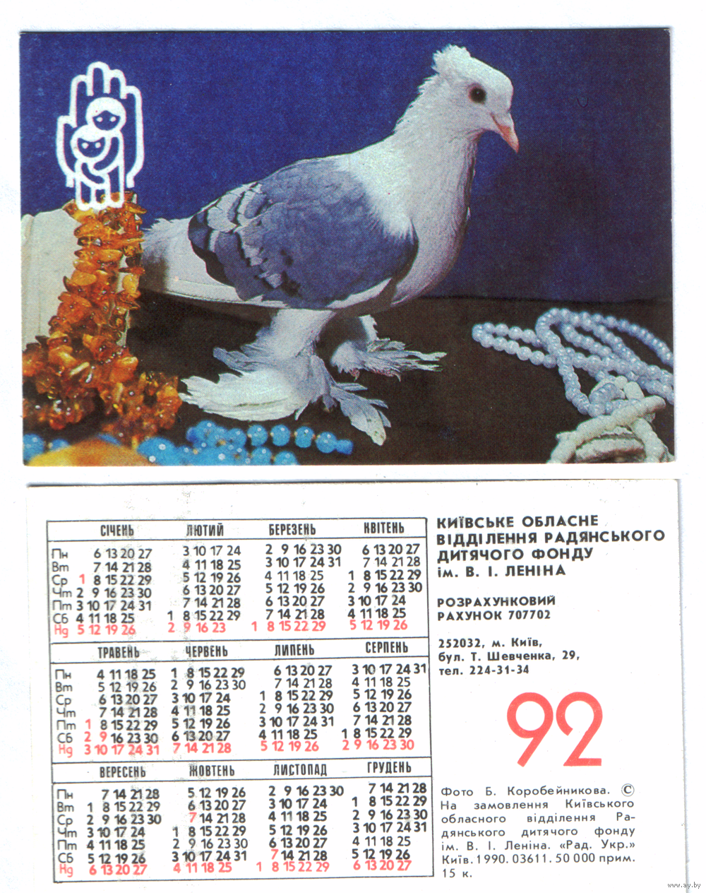 Календарь голубь мира 1992