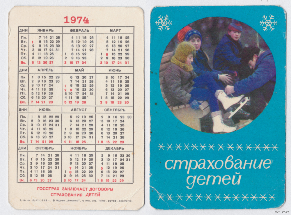 Календарь Госстрах Страхование детей 1974