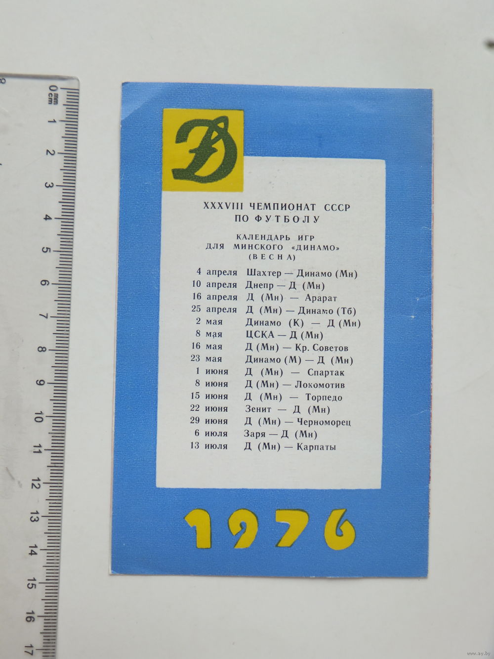Календарь игр спортлото Динамо Минск 1976 г