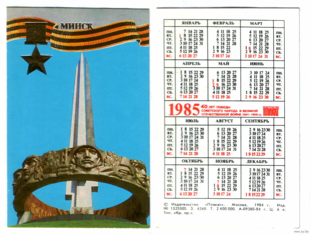 Календарь Минск курган славы 1985
