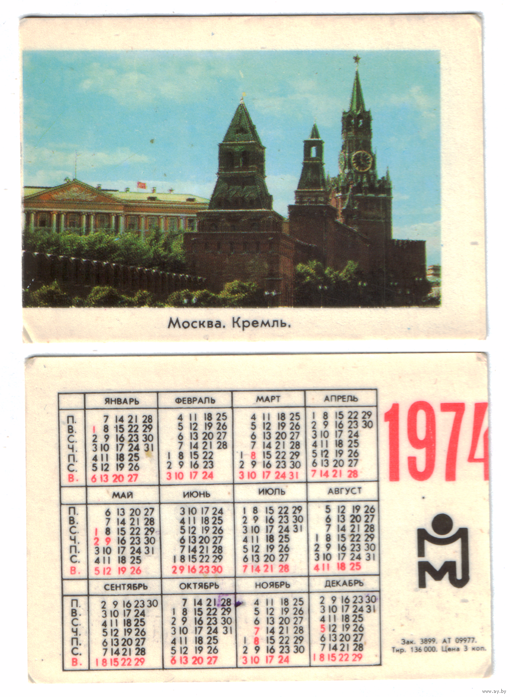 Календарь Москва Кремль 1974