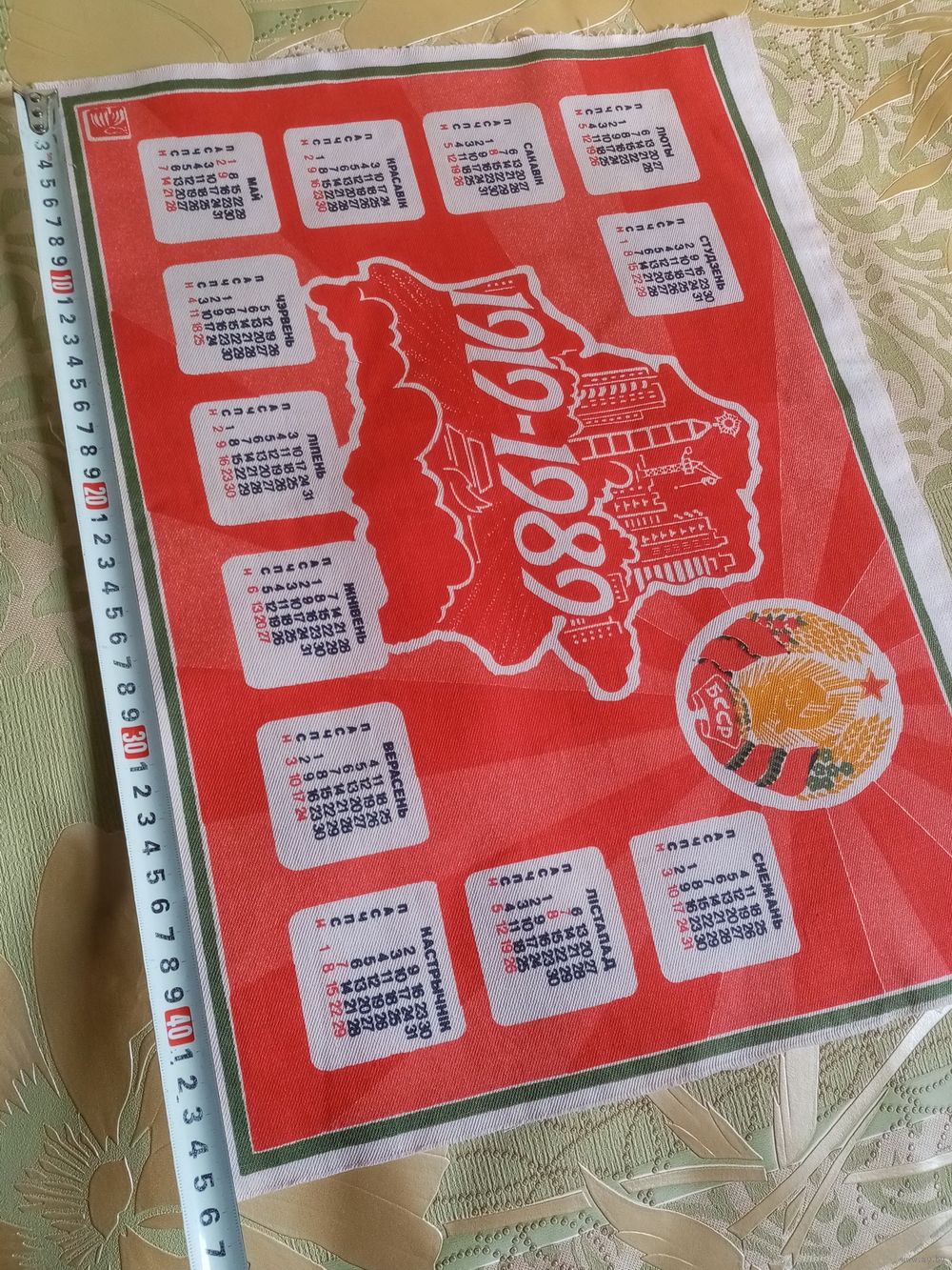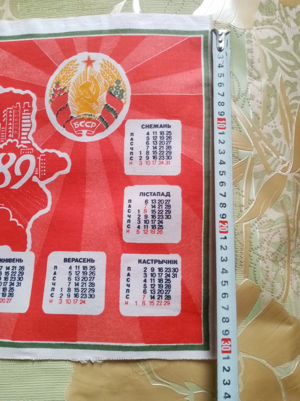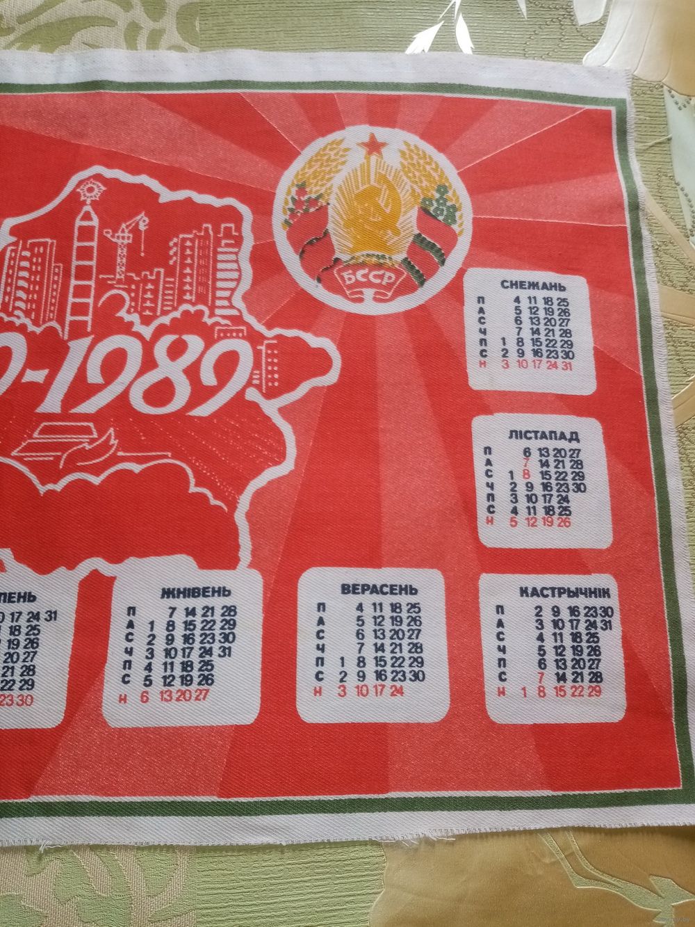 Календарь на ткани 1919-1989 70 лет Провозглашения Советской Белоруссии БССР СССР 40х27 см